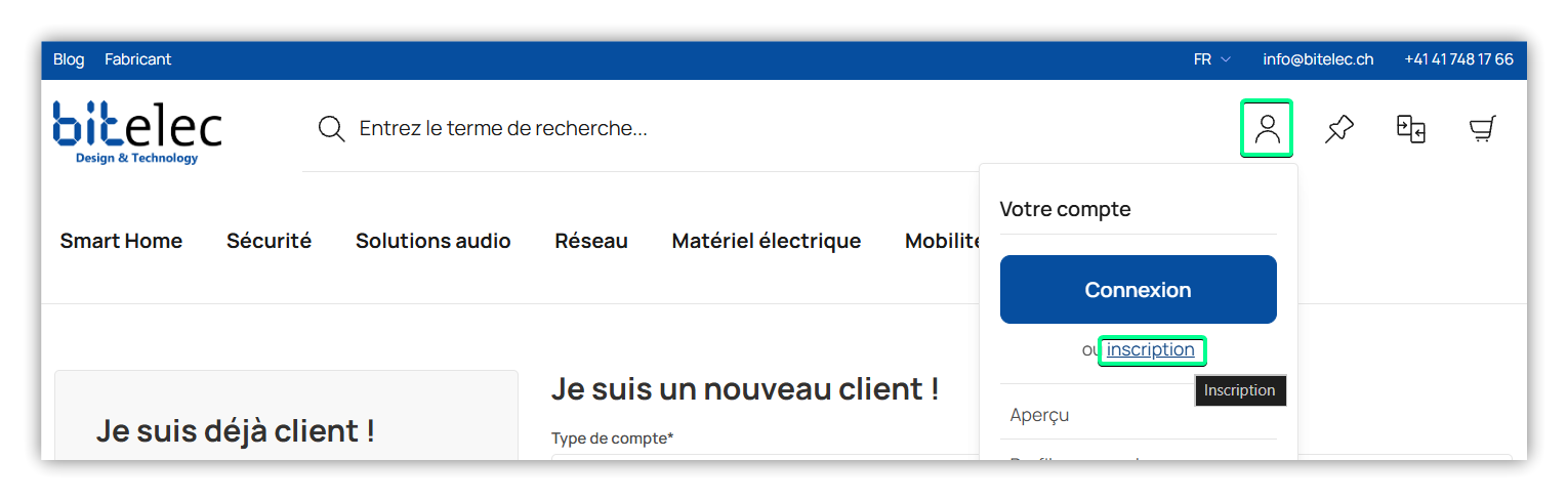 Vous pouvez créer votre compte client en cliquant sur le lien suivant: