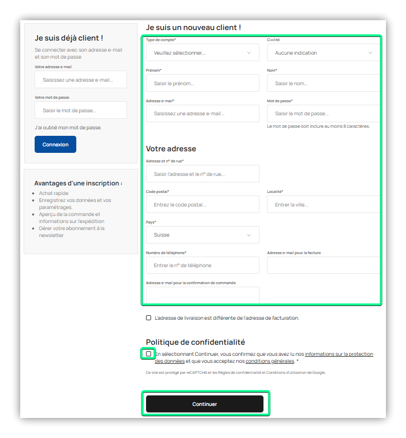 Pour pouvoir passer une commande via notre boutique en ligne, nous vous recommandons de créer un compte client afin de pouvoir accéder à l'avenir aux commandes et informations que vous avez passées.
